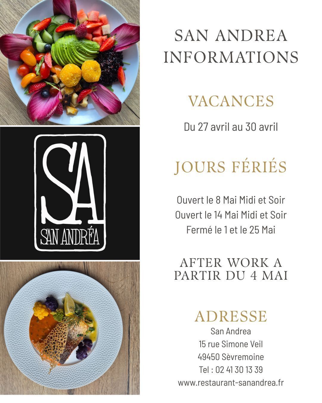 LE SAN ANDREA VOUS ACUEILLE DU LUNDI AU VENDREDI MIDI ET SOIR !!!